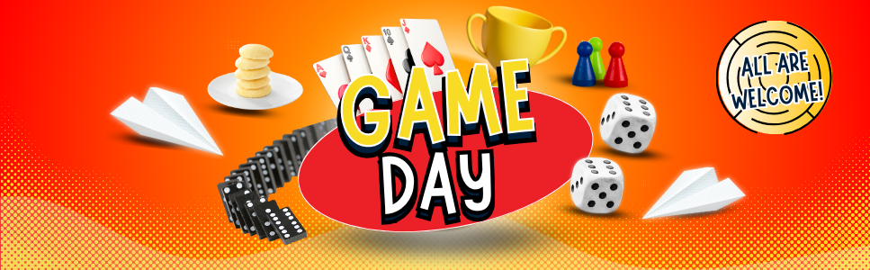 Get ready to join us for a fun and festive Game Day! We can't wait to spend an enjoyable afternoon together filled with games, laughter, and good company. Light refreshments will be provided. Bring your favorite game to share.