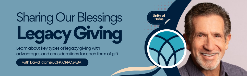 Leaving a gift to Unity of Davis in your estate plan can help ensure our ministry continues to provide positive, practical spiritual teachings beyond our lifetime so others can live prosperous and meaningful lives.