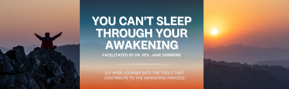 Join Rev. Dr. Jane Simmons for an online transformative 5-week course based on her book, You Can’t Sleep Through Your Awakening. The five sessions are an exploration into the tools that contribute to the awakening process. Participants will explore what it means to live a wakeful, conscious life, utilizing the FACE Formula of Forgiveness, Appreciation, Compassion and Embodiment.
